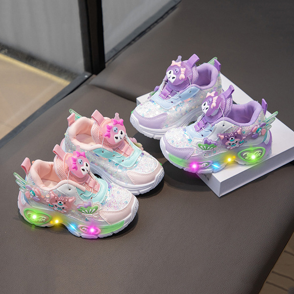 Girls' cartoon rotating button sneaker 2024 autumn new children's soft bottom kulomi bright lights torre shoes wholesale